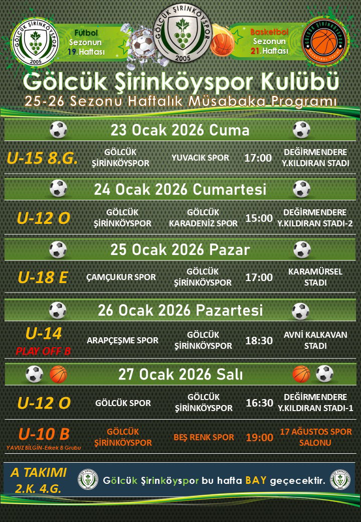 HAFTALIK MÜSABAKA PROGRAMIMIZ