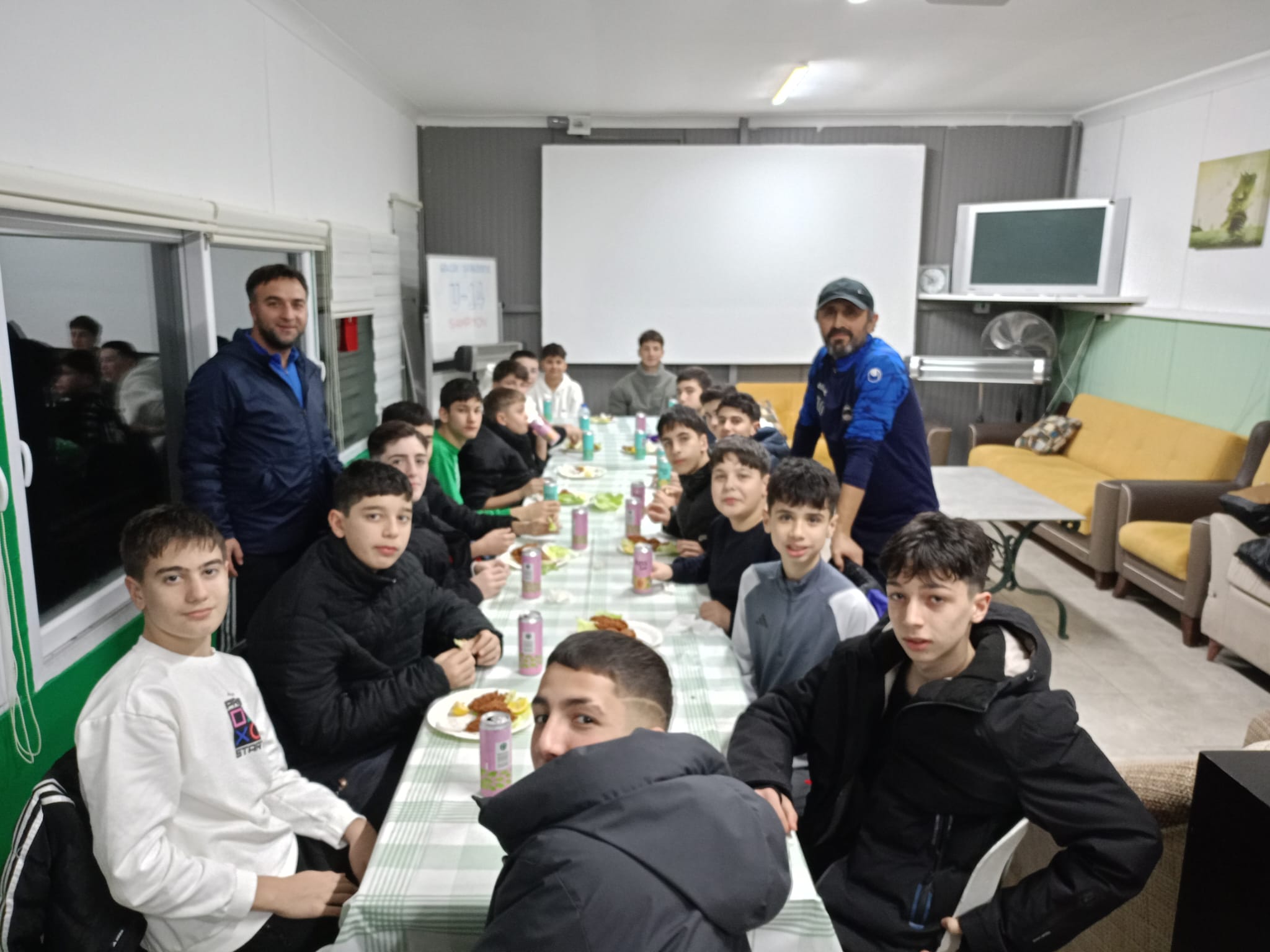 U-14 takımımız, Play-Off müsabakaları öncesinde Hasan Hocamızın hazırladığı çiğ köfte ve değerli velilerimizin katkılarıyla temin edilen içecek ve tatlılar eşliğinde keyifli bir mental idman gerçekleştirdi.